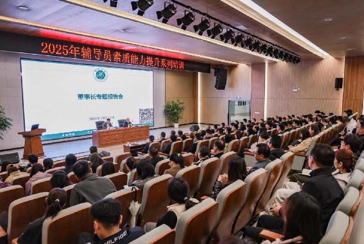 10月14日下午,董事长任万钧教授在工程舫学术报告厅为全体学工人员专题授课。本次报告会由校长助理程永清主持,学工系统全体人员参加。